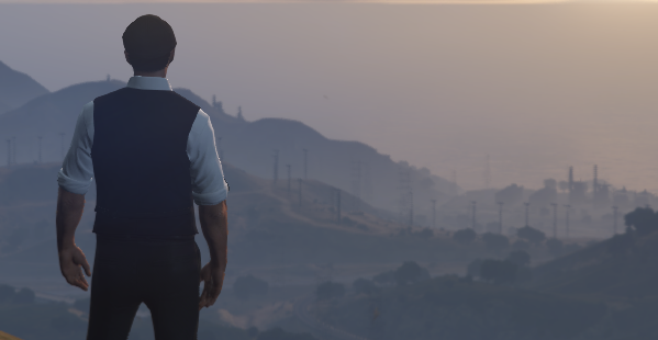 Somewhere up in Chiliad’s hills, poised a dozen miles from the thick of the city, it’s easy to stop and just take in the view. The sunsets are beautiful. The ocean looks gorgeous. At night, the city gains a yellowish hue of artificial light, and even distant glints of yellow artifice are arresting. Los Santos is indulgent, a treat for the senses, and for the briefest moments, a study in the kind of aesthetic that costs millions of dollars to live amongst sweeping landscapes and aesthetically decadent urban sprawls. In brief, breathtaking. Then a jet bathes the area in explosions, and the view is stolen away in fire.