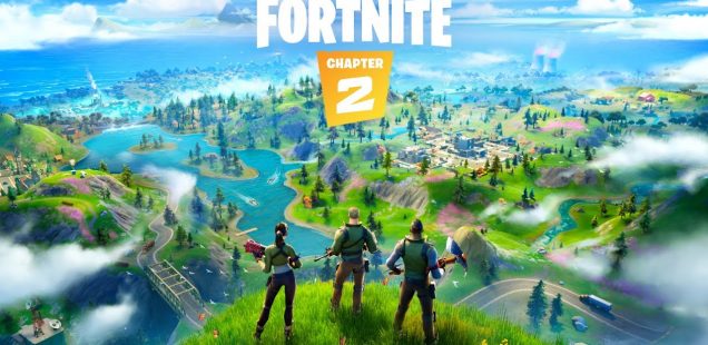 The first match of Fortnite Chapter 2 starts straight after the cinematic, no menus or anything, so Gedas was jumping out of a bus before he’d even sat back down. After a bit of free falling he hit the parachute and landed amongst some buildings in a place called Lazy Lake. It’s a waterside development of two and three-story buildings, I think meant to resemble a tech park, explicitly some dreaded Silicon Valley “campus”. He ran about for a bit, grabbed a few guns, and then got shot to death while fumbling with the weapon switching buttons. “I’m just getting used to the Xbox controller,” he said. “I play Fortnite all the time.”