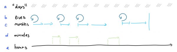 In games, time is split between several layers of different pacing. Cyclical, repeating, unreal time. Games dissect my time, multiplying it into various forms. There is the real time I spend playing the game, and there is a set of conditions that shape the in-game time: the timeflow of the game world, the time where the narrative takes place, the repeating cycles of play and finally the all of the discrepancies, happening between the real and in-game times. I want to draft the map of time in the average videogame world.