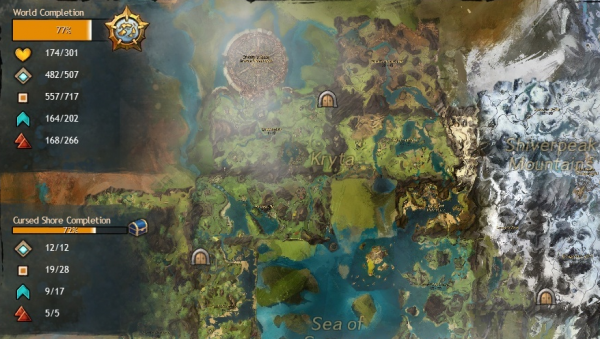 Helpfully, I am not alone in my disinterest towards current Triple-A design. Janine Hawkins, for example, articulates the pleasantly surprising experience of travelling to Dragon Age: Inquisition’s Hissing Wastes and finding it as barren as its name would suggest. The relative absence of quest markers that would otherwise guide player action reflects an approach that prioritizes the feel of the space at the expense of risking negative player responses towards its minimal structure. (Consider Guild Wars 2’s quantified exploration, which assigns experience point rewards for reaching ‘points of interest’, ‘vistas’, and ‘waypoints’, as its contrast.) Hawkins celebrates the design of unadorned spaces, characterizing the obsessive saturation of objectives and achievements as “the rambling, nervous chatter of someone who can feel an awkward silence coming and will do absolutely anything to delay it.”